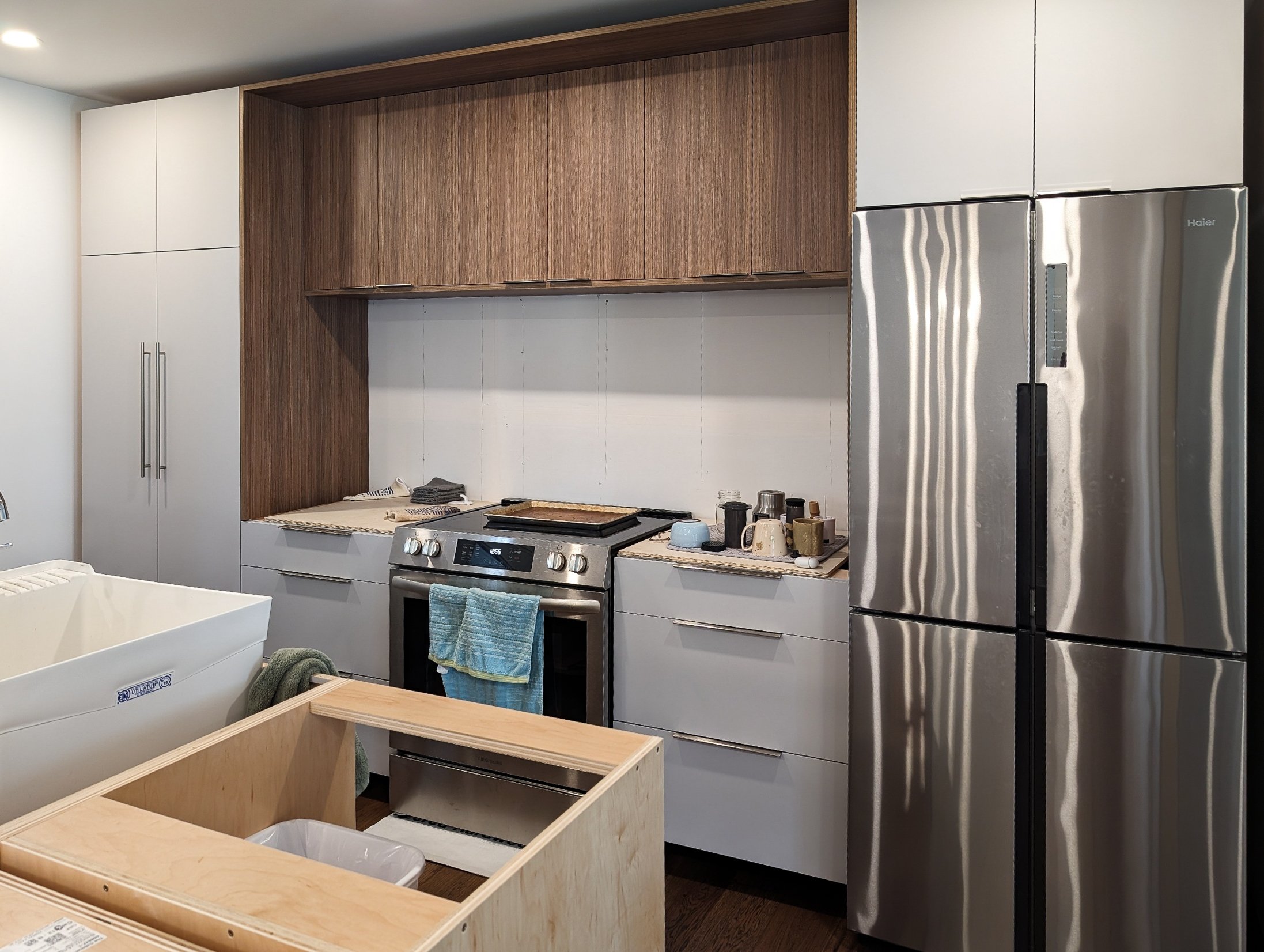 Renovation projects and remodels take time. Why wait to see the finished product when the assembly looks so good? Take a look at these customers’ works in progress for examples of our trending finishes and custom cabinet configurations.