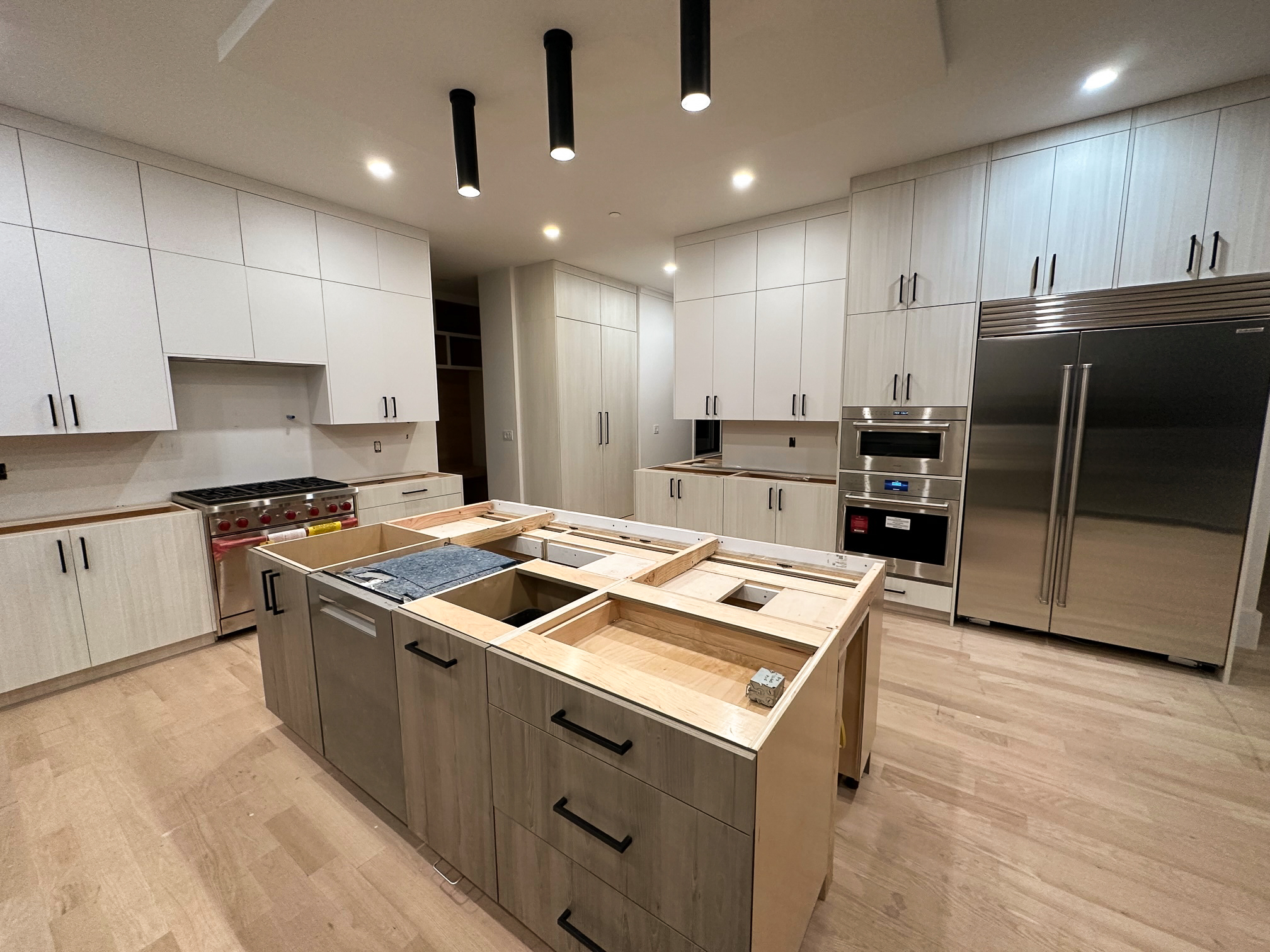 Renovation projects and remodels take time. Why wait to see the finished product when the assembly looks so good? Take a look at these customers’ works in progress for examples of our trending finishes and custom cabinet configurations.